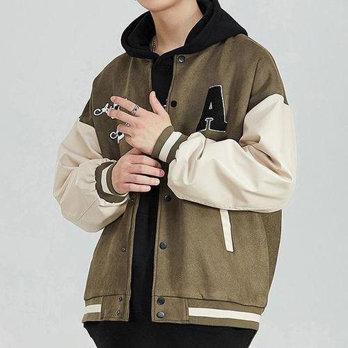 라우마스크스 바시티 자켓 기본 핏 블랙 자수 어깨 배색 남자 여자 야구 점퍼