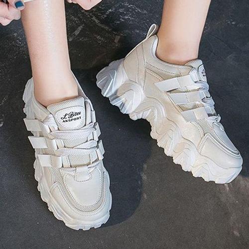 여성용 4.5cm 키높이 통굽 레트로 스니커즈 어글리슈즈 발편한 푹신한 운동화