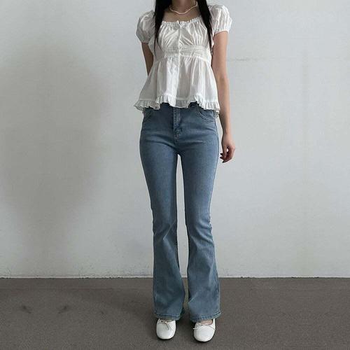 [셀럽하우스]여자 BUCB0437 세미부츠컷 연청바지 데님팬츠 나팔바지 데님진