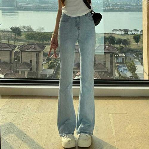 SAHINER 봄가을 여성용 빈티지 와이드 부츠컷 하이웨이스트 데님 팬츠 LWANZ53