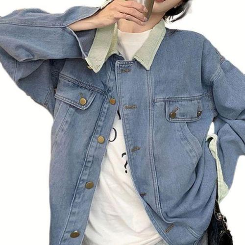 [에이치플러스몰]여성 간절기 루즈핏 배색 카라 청자켓 데님자켓