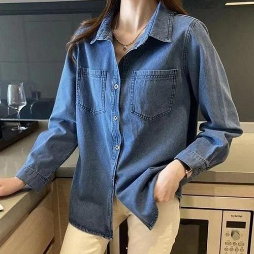 티엠포 진 와이셔츠 하프티캐주얼 톱셔츠 시즌 데님남방 여자 WFJIXRY