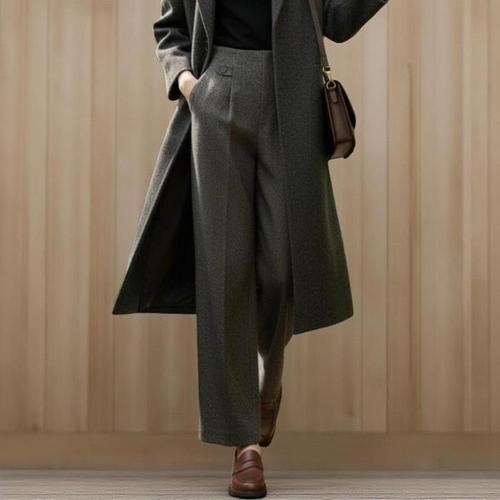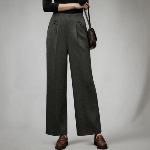 고품질 드레이프의 여성 정장 바지, 블랙/그레이 색상의 스트레이트 레그 캐주얼 스타일, 슬림핏과 편안함을 겸비한 넓은 다리 버전