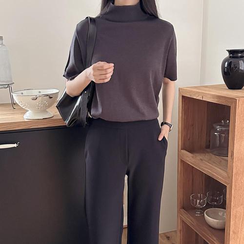 (스타일하우스) 니트티 스웨터 티셔츠 여성 정장 반팔 반폴라 니트 하프 터들넥
