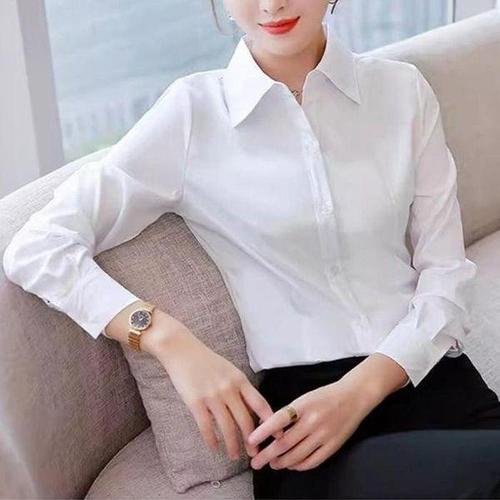[셀러허브_여성트랜드패션]여성 직장인 티셔츠 오피스 기본 셔츠 정장 슬림핏 긴팔 면접