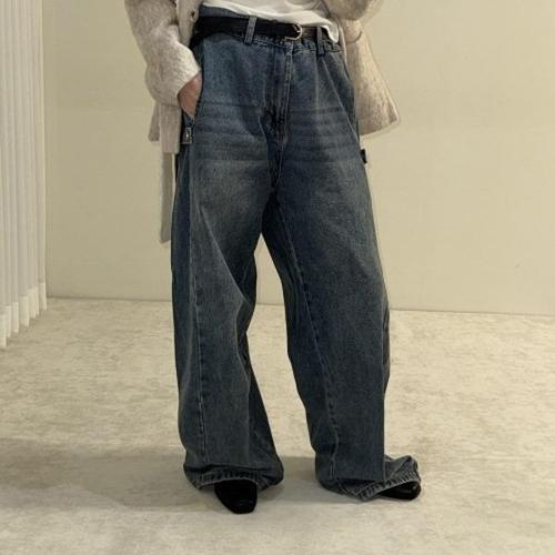 [갓샵]여성 포켓 핀턱 와이드 워싱 데님 조거 팬츠 청바지