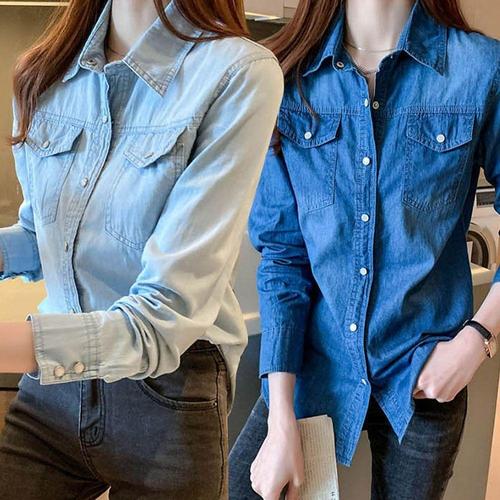 여자 캐주얼 긴팔 데님 셔츠 연청 진청 데일리 청남방 tNk6+6xJS