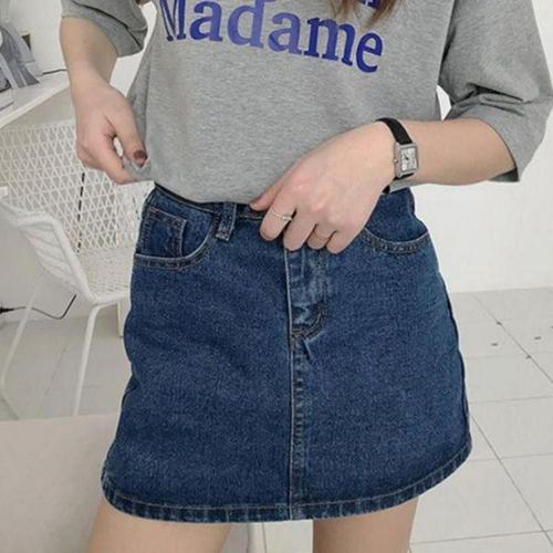 [에이치플러스몰]여성 데님 데일리 키작녀 청치마 클래식 빈티지 반팔