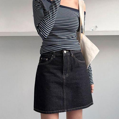 여성청치마 1P 여자 데님 하이웨스트 A라인 스커트