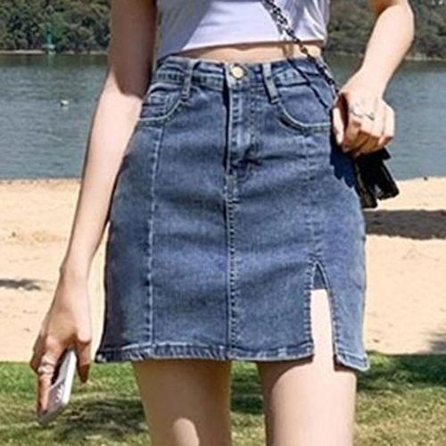 [에이치플러스몰]캐주얼 여자 데님 미니스커트 청치마 슬릿 데일리