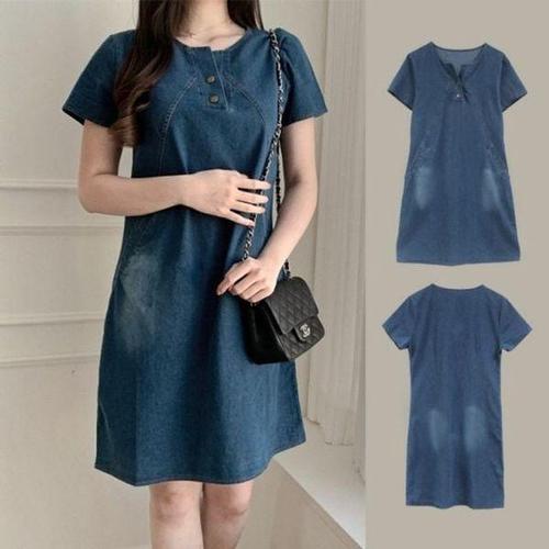 [에이치플러스몰]데님 여성 캐주얼 청치마 키작녀 필수템 빈티지 반팔