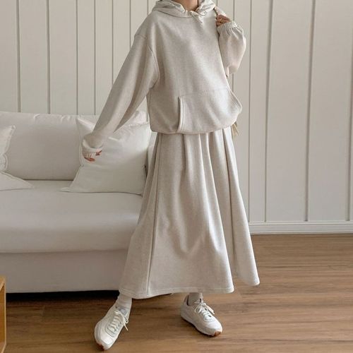 [엄지척]데일리룩 후드 투피스 세트 여성 캐주얼 롱스커트_19557003_667501