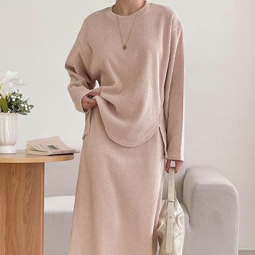 메이첼 어깨트임 맨투맨 + 밴딩 스커트 세트 06689