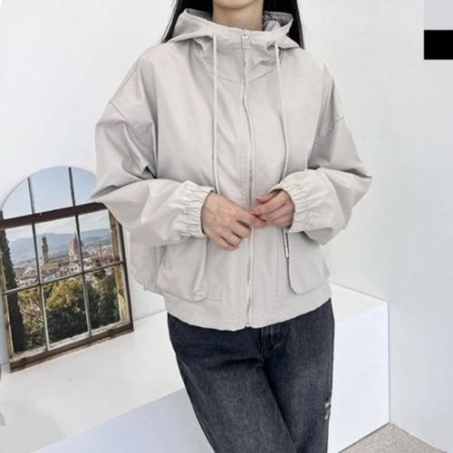 |CMJ65F1|여성용 크롭 후드 바람막이 점퍼 사이드 포켓 캐주얼 스타일