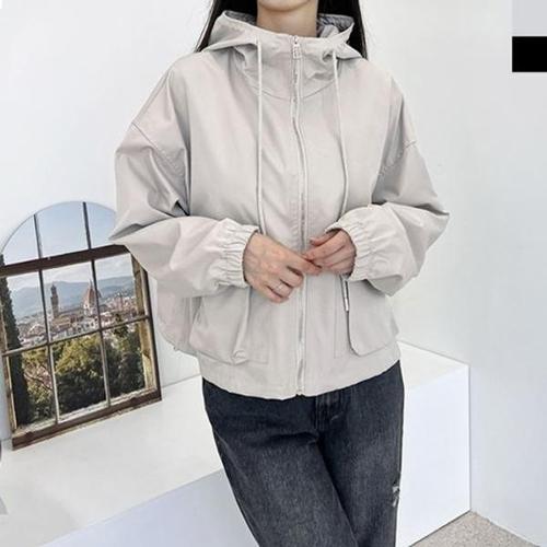 [미라클세븐]여자 캐주얼 포켓 크롭 시보리 후드 바람막이 자켓