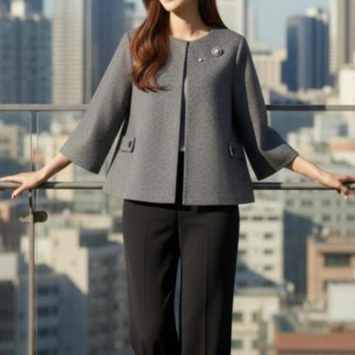 [신상오픈런]여성용 모직 자켓 헤링본 패턴 진주 장식 9부 오피스웨어 (42612869)