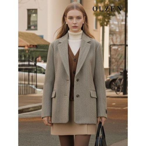 여성용 로베 울혼방 헤링본 모직 싱글 자켓