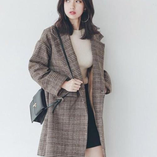 [다잇템][다잇템] 여자 롱 하프 환절기 격자 카라넥 헤링본 자켓_22894716_588872