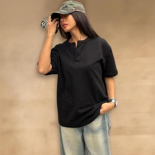 [신상오픈런]여성 남성 슬림핏 트임 기본 반팔 티셔츠 여름 헨리넥 (36186760)