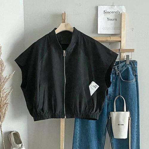 [신상오픈런]여성용 일상 헨리넥 절개 반팔 집업 조끼 (40946623)