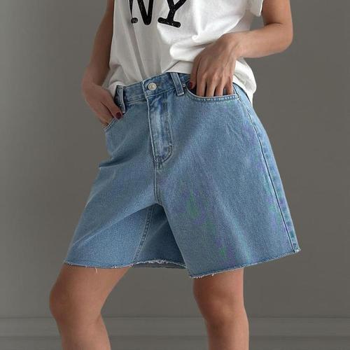 바비팩토리 여성용 워싱 데님 청 반바지 A라인 3부 숏팬츠
