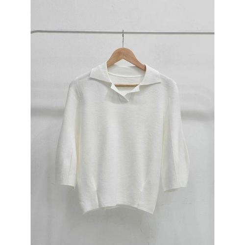 [샵앤]여성 오픈 카라넥 퍼프 7부소매 니트 티셔츠 SIU-WKN-4939-아이보리