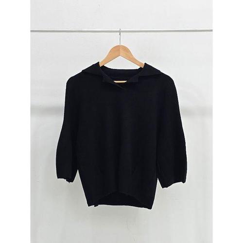 [샵앤]여성 오픈 카라넥 퍼프 7부소매 니트 티셔츠 SIU-WKN-4939-블랙