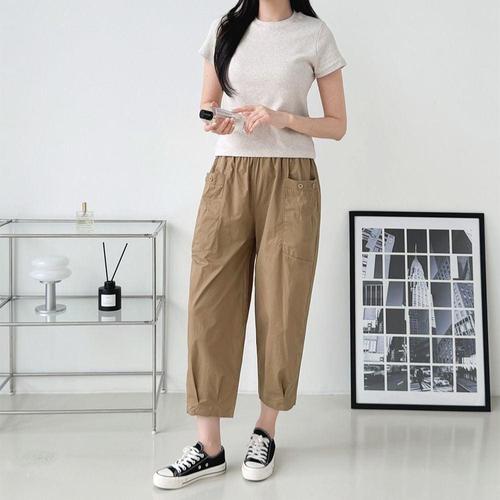 구디프 여성용 8부 허리밴딩 스트링 데일리 배기팬츠