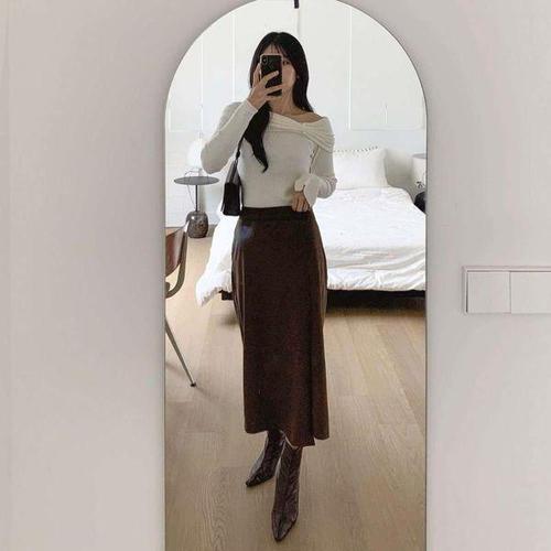 [신상오픈런]여성 키치무드 스웨이드 슬릿 h라인 롱 스커트