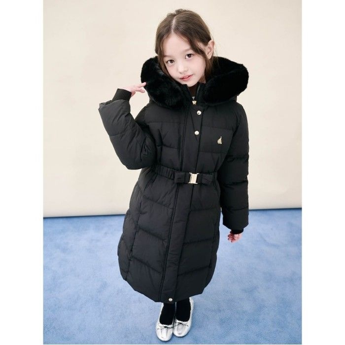 [블루독8-키즈] 택1 네이비 롤리B벨트덕다운점퍼 오리털 여아 롱패딩 파카 두돌선물 초등학생 25C7511452