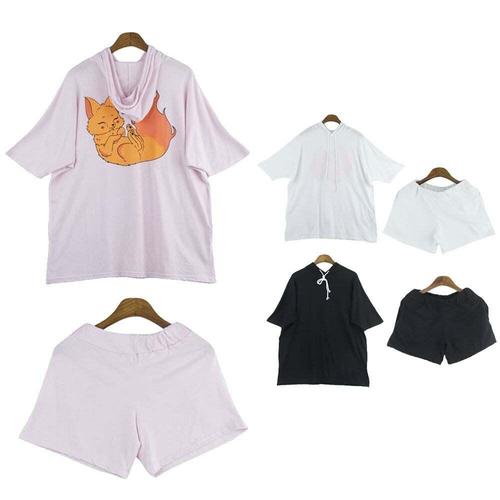[에이치플러스몰]반팔후드세트 홈웨어 여우 오버핏