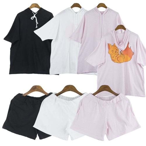 [셀럽하우스]오버핏 NDOA1245 인기 여우 반팔후드세트