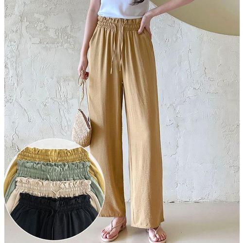 [비비드글램]라미 린넨 와이드팬츠 4color / 여름 바지 밴딩 슬랙스 주머니 있음