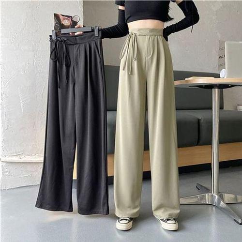 Kumikumi 하이 웨이스트 드레이프 바지 여성 가을 스트레이트 레그 슈트 바지 긴 바지 슬리밍 효과 한국 스타일