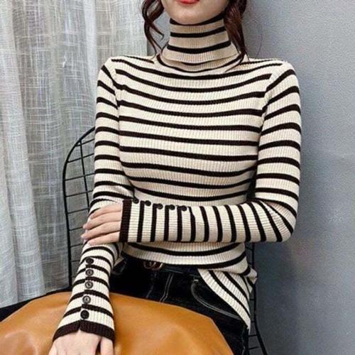 [셀럽하우스]티셔츠 PPGN7755 20대 여자상의 단가라 스트라이프 긴팔 목폴라