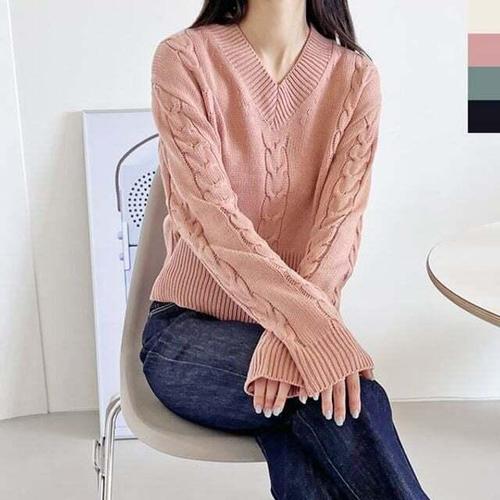 [HYIJTKSN_4B]여자상의 1028 여자 러블리 꽈배기긴팔니트