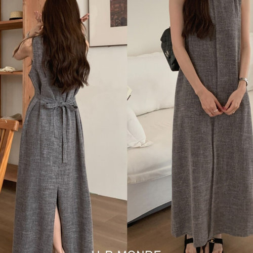 유아몽드 / 클래식 여성 롱 원피스 허리끈 포함 백 슬릿 포인트