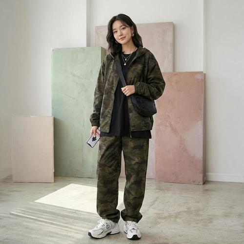 여자 아웃도어 카모 작업 넓은 빅사이즈 팬츠