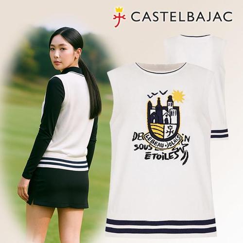 [까스텔바작]여성골프웨어 여자 니트 베스트 가을 엠블럼 포인트 골프조끼