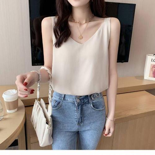 [에이치플러스몰]흰 쥬디제이 정장 탑 여름 새틴 여성 이너 이