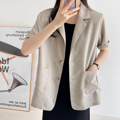 [신상오픈런]여자 여름하객룩 어깨패드 반팔 투포켓 루즈핏 자켓 (36387883)