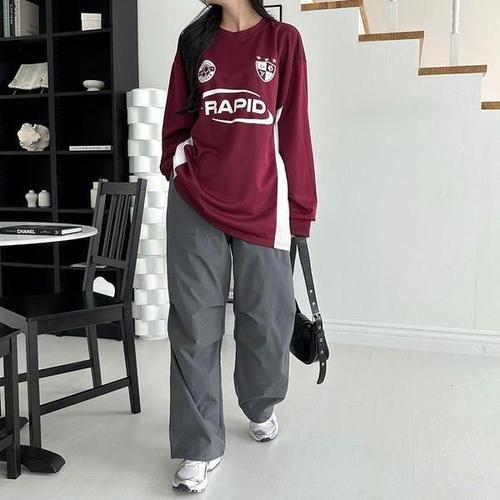 [셀러허브_여성트랜드패션]ONM 배색 풋볼 남녀공용 긴팔 루즈핏 티셔츠 져지티