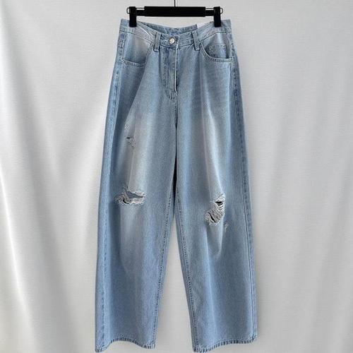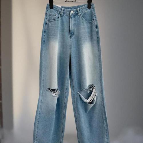 [신상오픈런]여성 스트릿 스타일 찢어진 와이드핏 청바지 디스트로이드 (38566138)