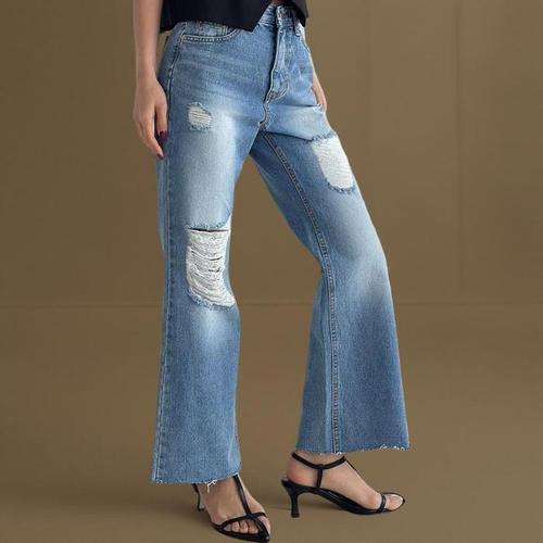 [신상오픈런]여성 빈티지 찢어진 청바지 여름용 컷팅 부츠컷 (34574615)