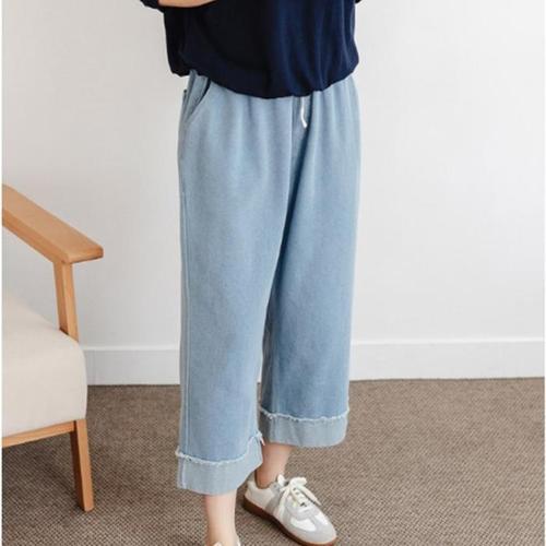 코모도 여성 와이드 청바지 뒷밴딩 롱 데님 팬츠 ( 3단기장 )