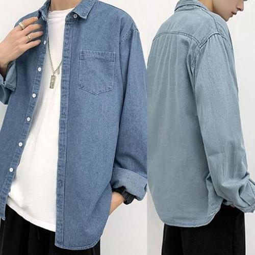 [셀러허브_여성트랜드패션]2컬러 긴팔 남성 데님셔츠 긴팔셔츠 청남방 데님 셔츠