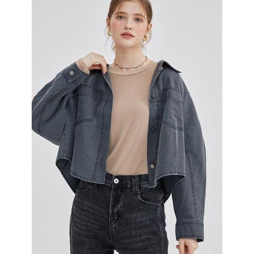 샵앤) 여성 카라넥 크롭 포켓 가오리핏 언발 남방 데님 셔츠 JVL-WBL-20280-진청