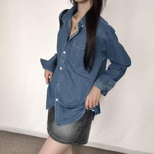 [에이치플러스몰]여성 빈티지 청남방 1P 루즈핏 봄가을 버튼 데님 셔츠