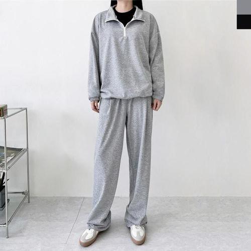 가을 겨울 여성 기모 운동복 심플 포근한 후드 자켓 밴딩 와이드 조거팬츠 데일리룩 트레이닝 츄리닝 상하세트