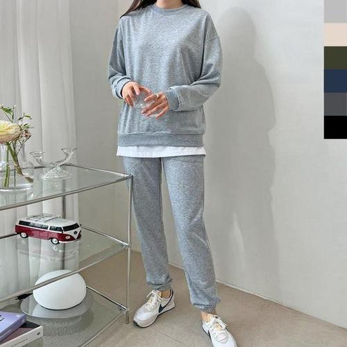 여성 트레이닝 세트 겨울 기모 도톰 루즈핏 긴팔 맨투맨 조거 팬츠 상하복